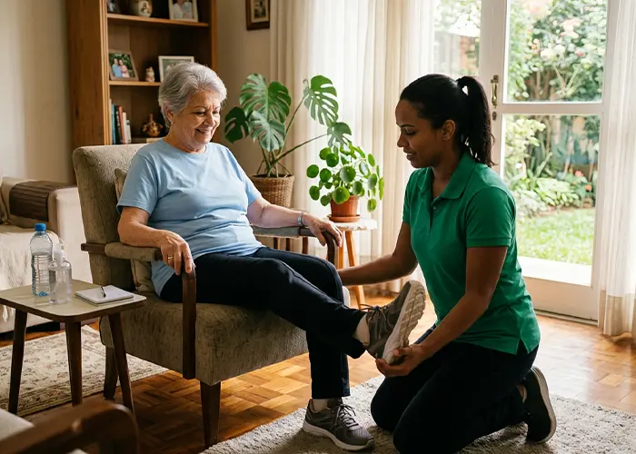 Mobilidade e Transferências: Suporte para locomoção dentro e fora do leito, auxílio em caminhadas e exercícios leves, prevenindo quedas e estimulando a autonomia.